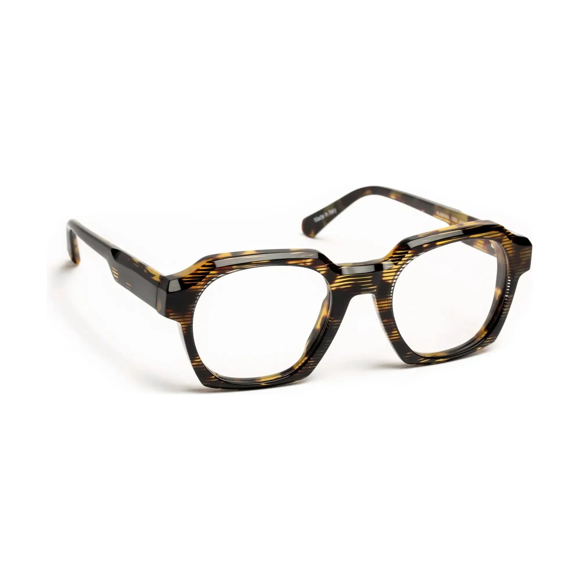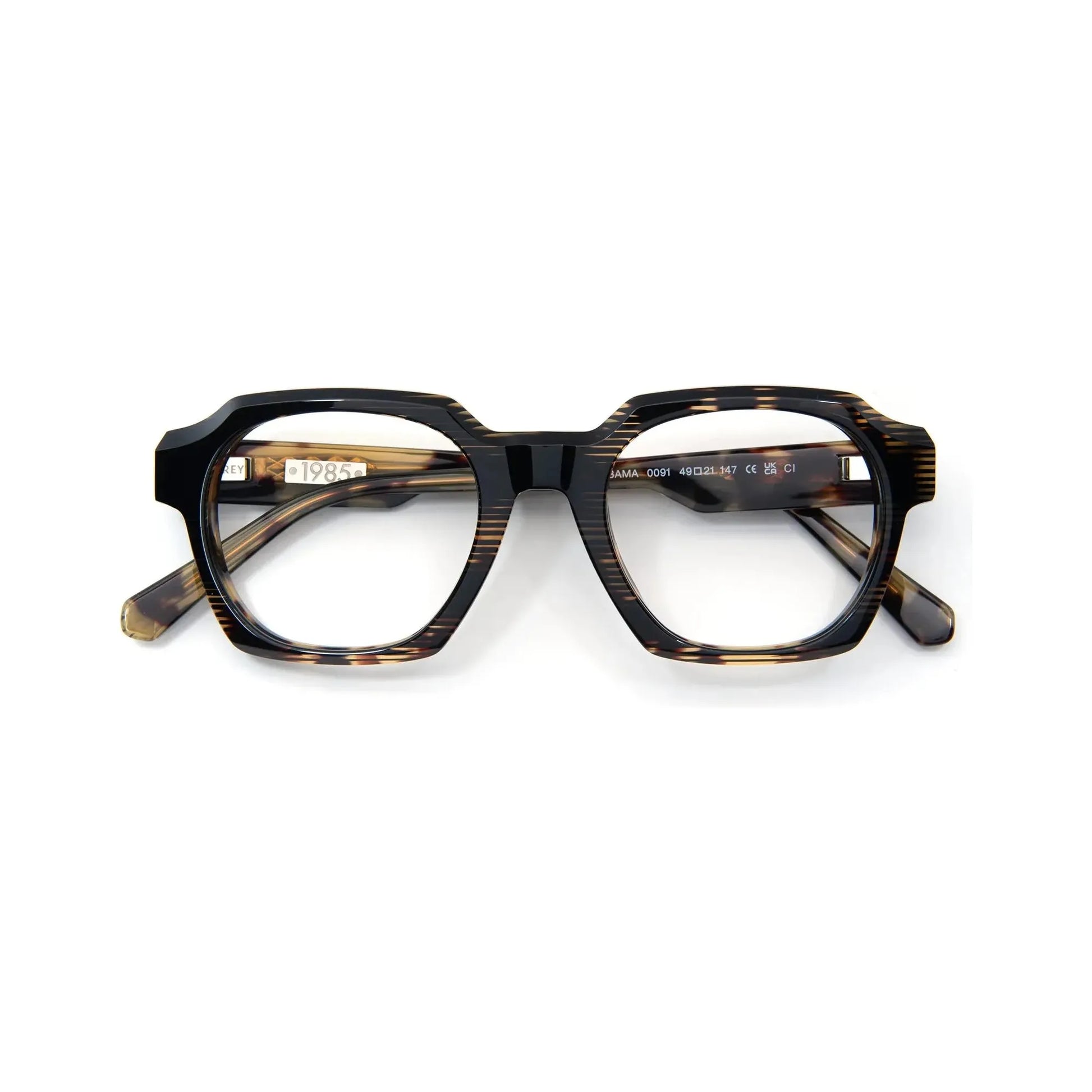 The Alabama model is designed in thick acetate, a style that embraces the BOLD spirit. The frame features a unique mix of patterns, including stripes, checkerboard and a masculine tortoiseshell texture. Bevel effects create distinctive reflections an volumes in the design. Meticulous hand-finishing down to the smallest detail underlines its elegant, artisanal character.