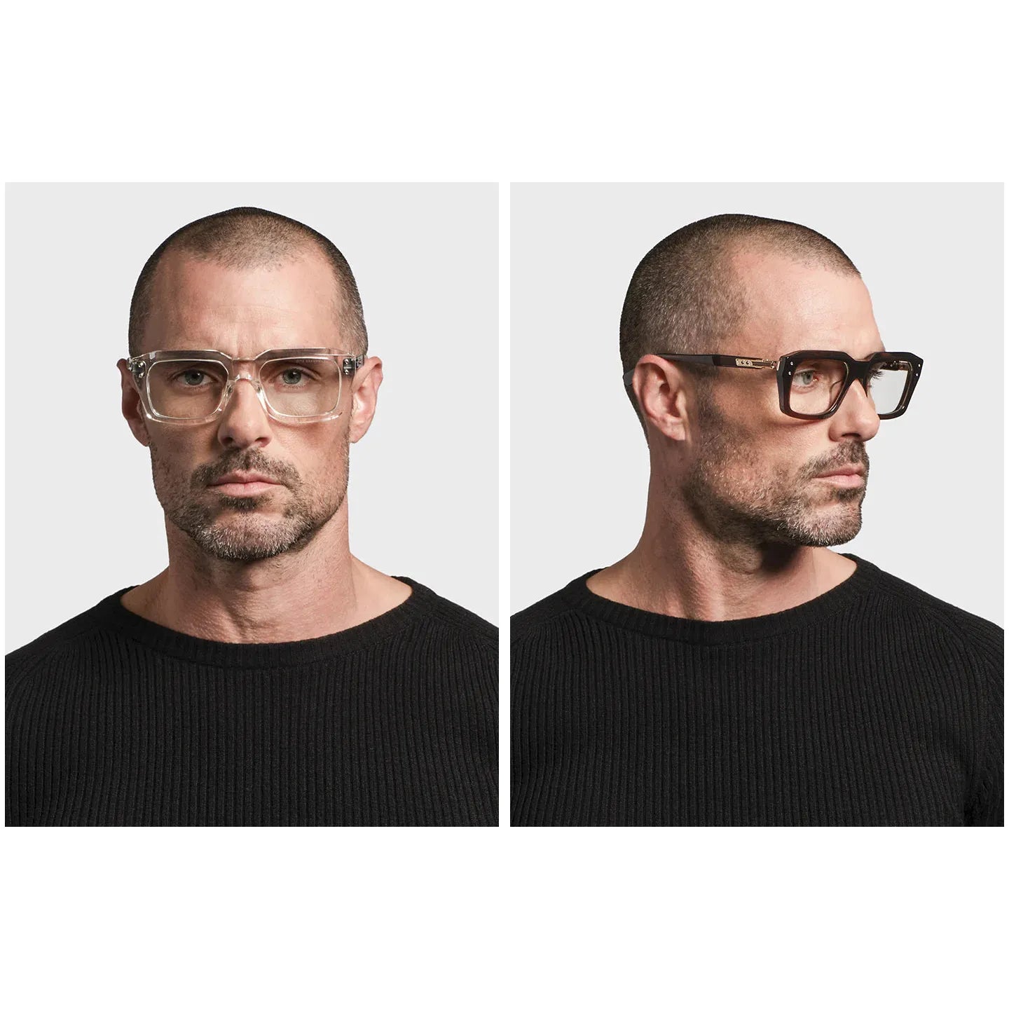 We continue to reimagine the GRANDMASTER-SERIES with the ninth iteration. First introduced in 2007, the GRANDMASTER-SERIES celebrates the iconic b-boy style of the late '70s, paying tribute to the spirit of New York's underground scene and the pioneering artists who have electrified the world for nearly 40 years. Known for their distinctive thick acetate frames and bold industrial hardware detailing, each release in the GRANDMASTER-SERIES has upheld these identifiable traits. The GRANDMASTER-NINE offers a more compact design compared to the GRANDMASTER-EIGHT, while maintaining the robust feel that defines the series.